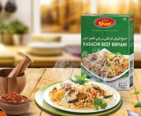 A hearty mix for making Karahi beef biryani, combining spices for a savory, spicy rice and beef dish.