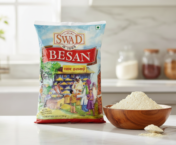 Swad Besan (Gram Flour), 4 lb – Elevate your culinary creations with Swad Besan, a premium gram flour made from finely ground chickpeas. This 4-pound pack offers a superfine texture, ensuring smooth batters for pakoras, chillas, and traditional sweets like laddoos. Naturally gluten-free and rich in protein, it’s an essential ingredient for both everyday meals and festive delicacies.